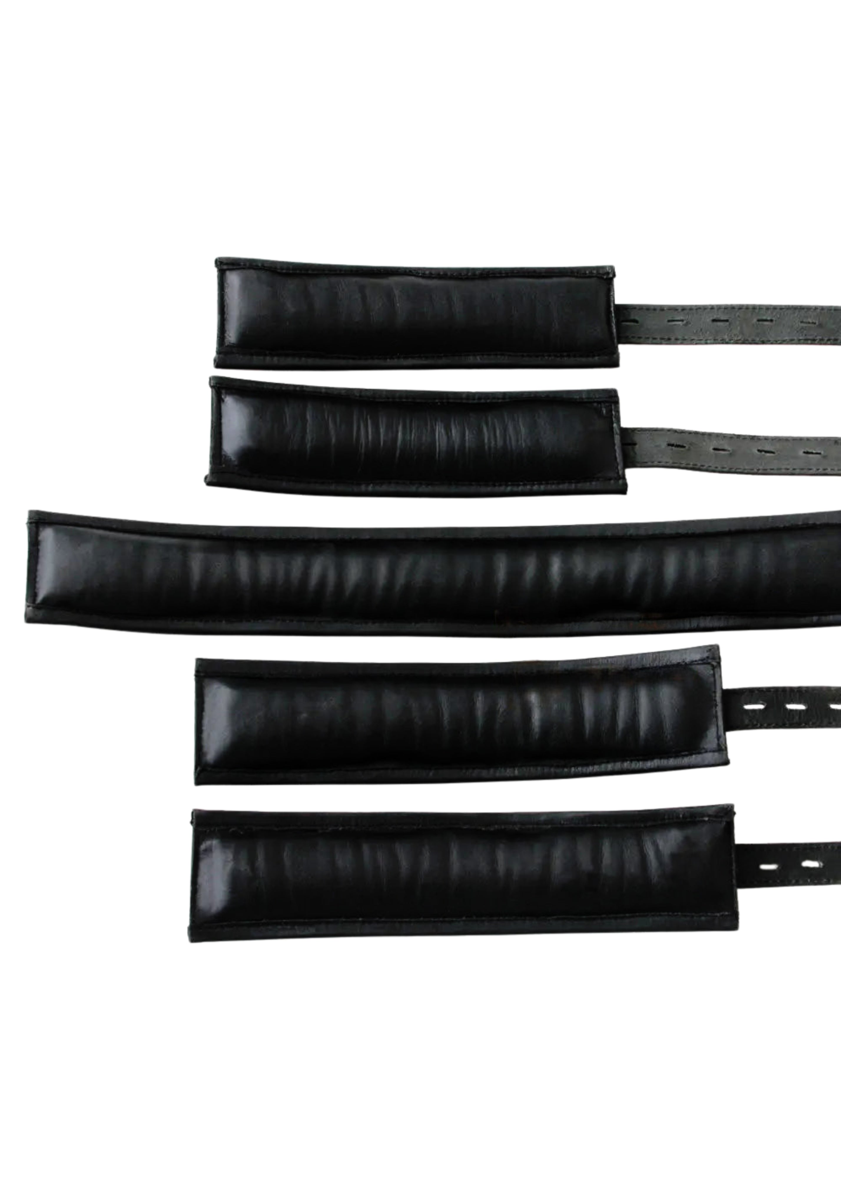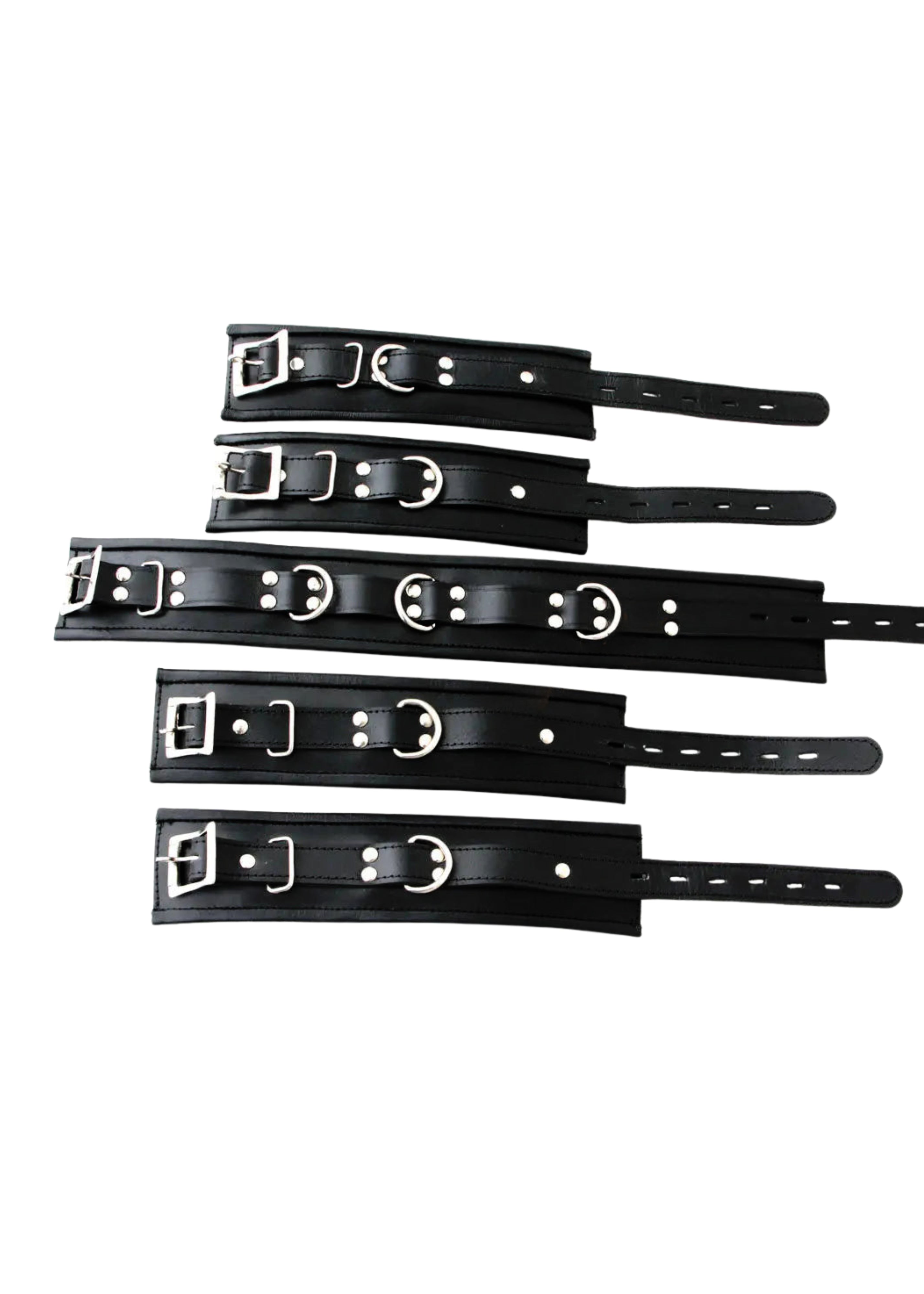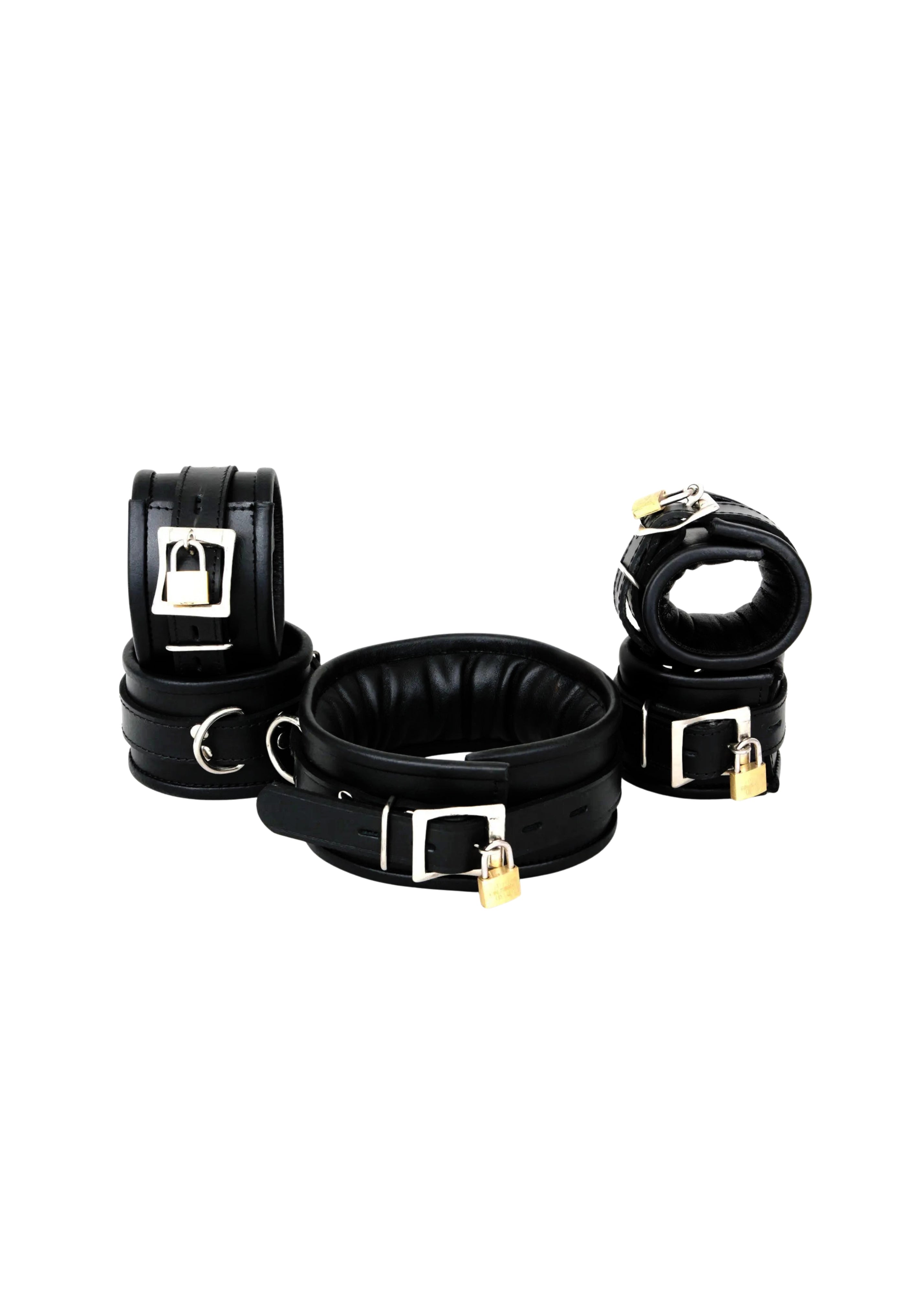 Real Cow Leather Wrist, Ankle Cuffs & Neck Collar Restraint Bondage Set Black 5 Piece set Padded Cuffs Lockable