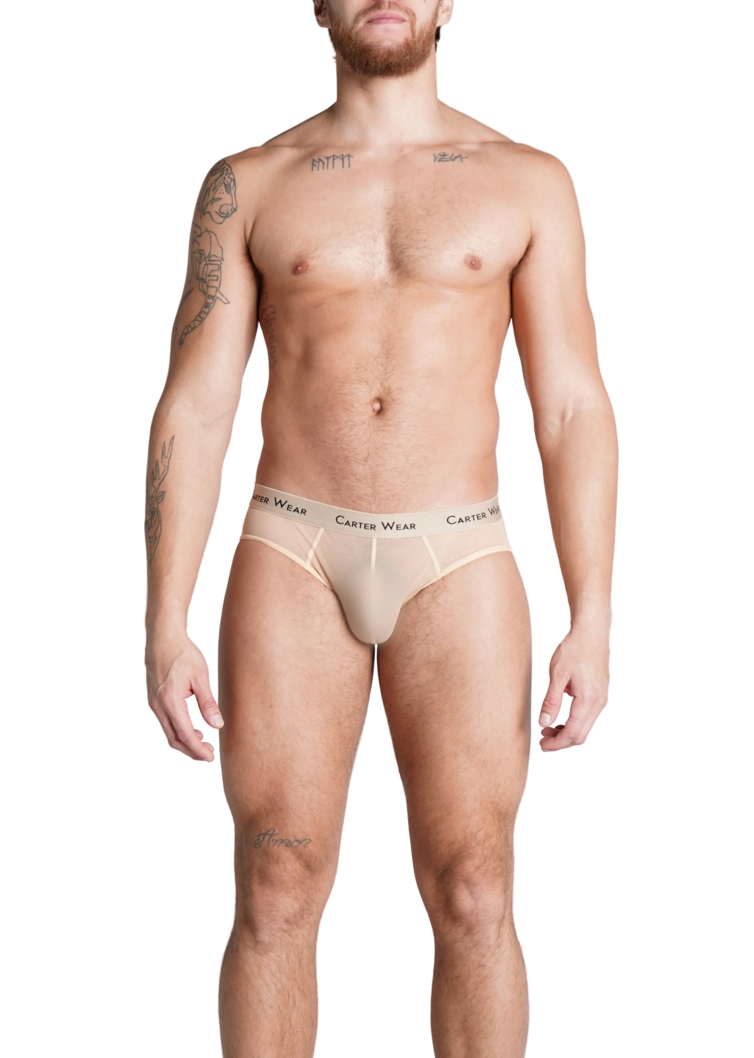 This Soft-Touch HD Micro Mesh and signature Carter Wear repeated branding on the waistband. Stretchable, Maximum breathability, Soft, Durable. Fabric Composition is 95% Nylon, 5% Spandex. Item will fit true to size. Model is 5'10 and is wearing a size Medium.