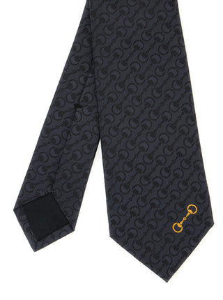 Black Silk Tie With Horsebit Embroidery
